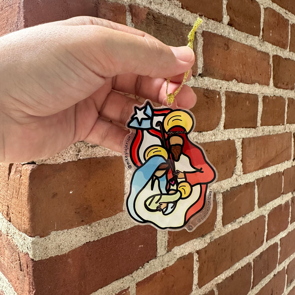 Acrílico Impreso. Contiene cinta de tela para enganche en la parte superior.