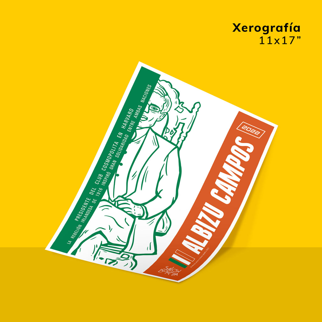 Xerografía (Impresión digital) sobre cartoncillo blanco (semi-glossy) de alta calidad. Diseñado por Salón Boricua; Wilmer Jobeth Fernández y Mikeyla Jerian Maldonado.Tamaño: 11 x 17" pulgadas