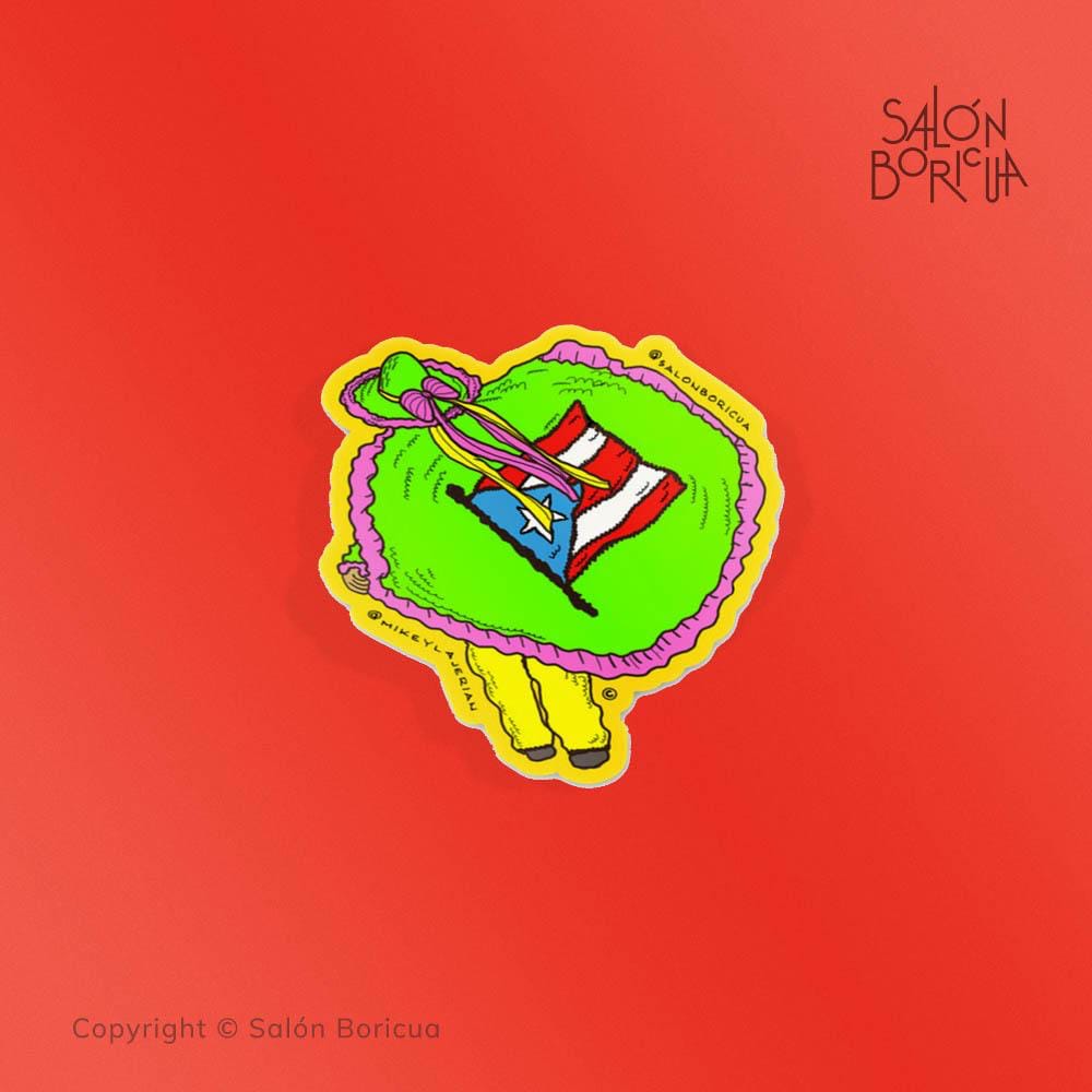 Impreso en vinil plástico premium con laminado de protección contra rayaduras, luz solar y lluvia. Troquelado. Diseñado por Mikeyla Jerian Maldonado Meléndez.