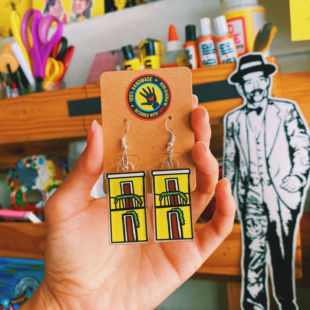 Pantallas: Casa en Viejo San Juan (Acrylic/Stainless Steel Earrings)