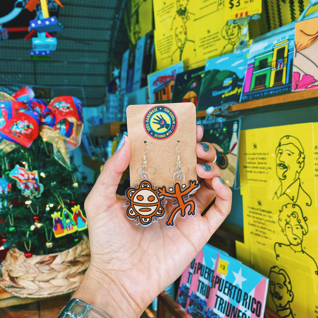 Pantallas: Sol + Coquí Taíno (Acrylic/Stainless Steel Earrings)