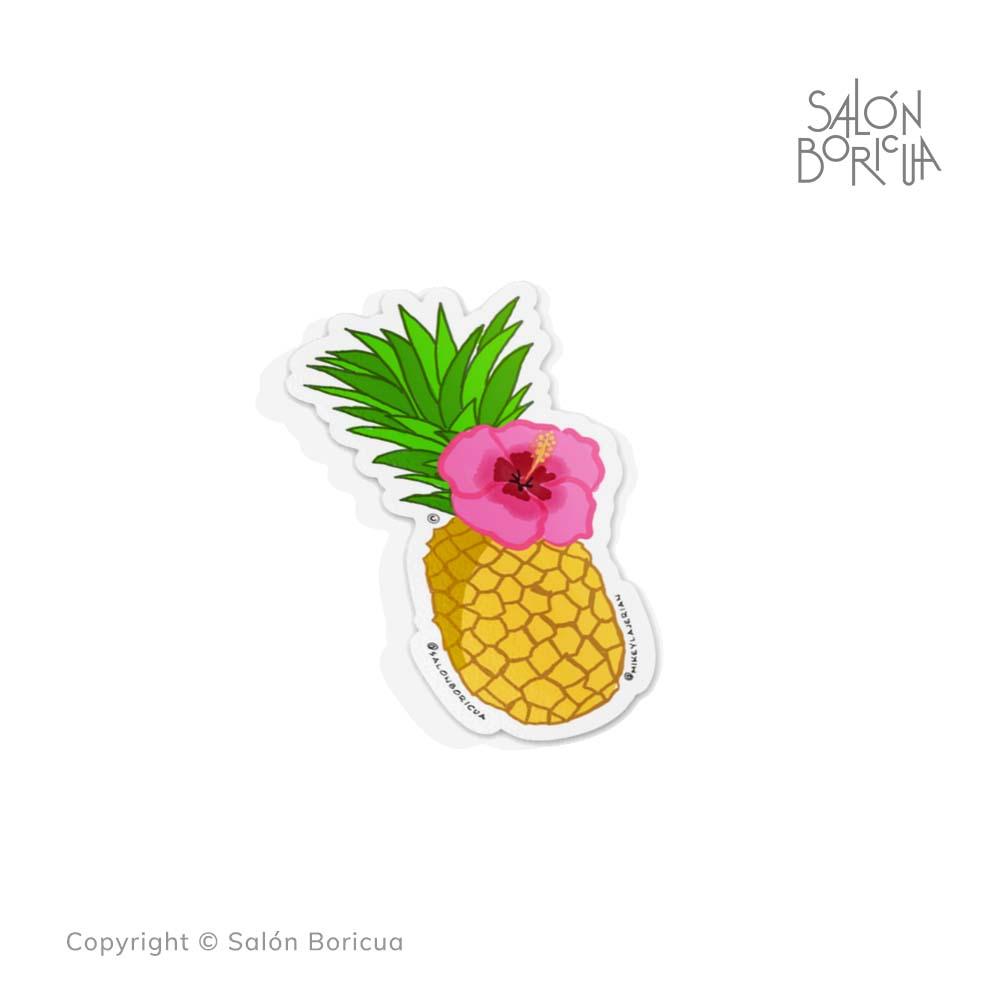The 'Big-headed' Pineapple of Lajas next to a hibiscus flower. It is one of the favorite tropical fruits of Puerto Ricans. It is also one of the main ingredients of the famous 'Piña Colada', a delicious cold drink invented in Puerto Rico in the 1950s. In the island there are pineapple crops in the municipalities of Lajas, Manatí, Santa Isabel, Guayanilla and Guánica .