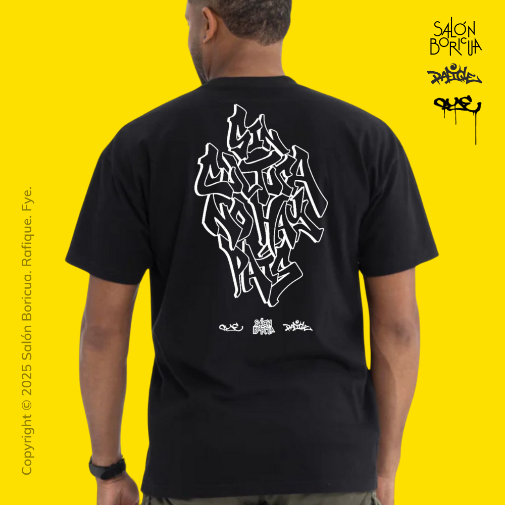 Esta camiseta es más que una prenda de vestir: es una declaración. Parte de la iniciativa cultural Sin Cultura No Hay País —una colaboración entre Salón Boricua, Rafique y Fye. Tu compra apoya directamente a los artistas detrás de este proyecto, que busca defender el Instituto de Cultura Puertorriqueña y abrir espacio para conversaciones urgentes sobre nuestra identidad y patrimonio.