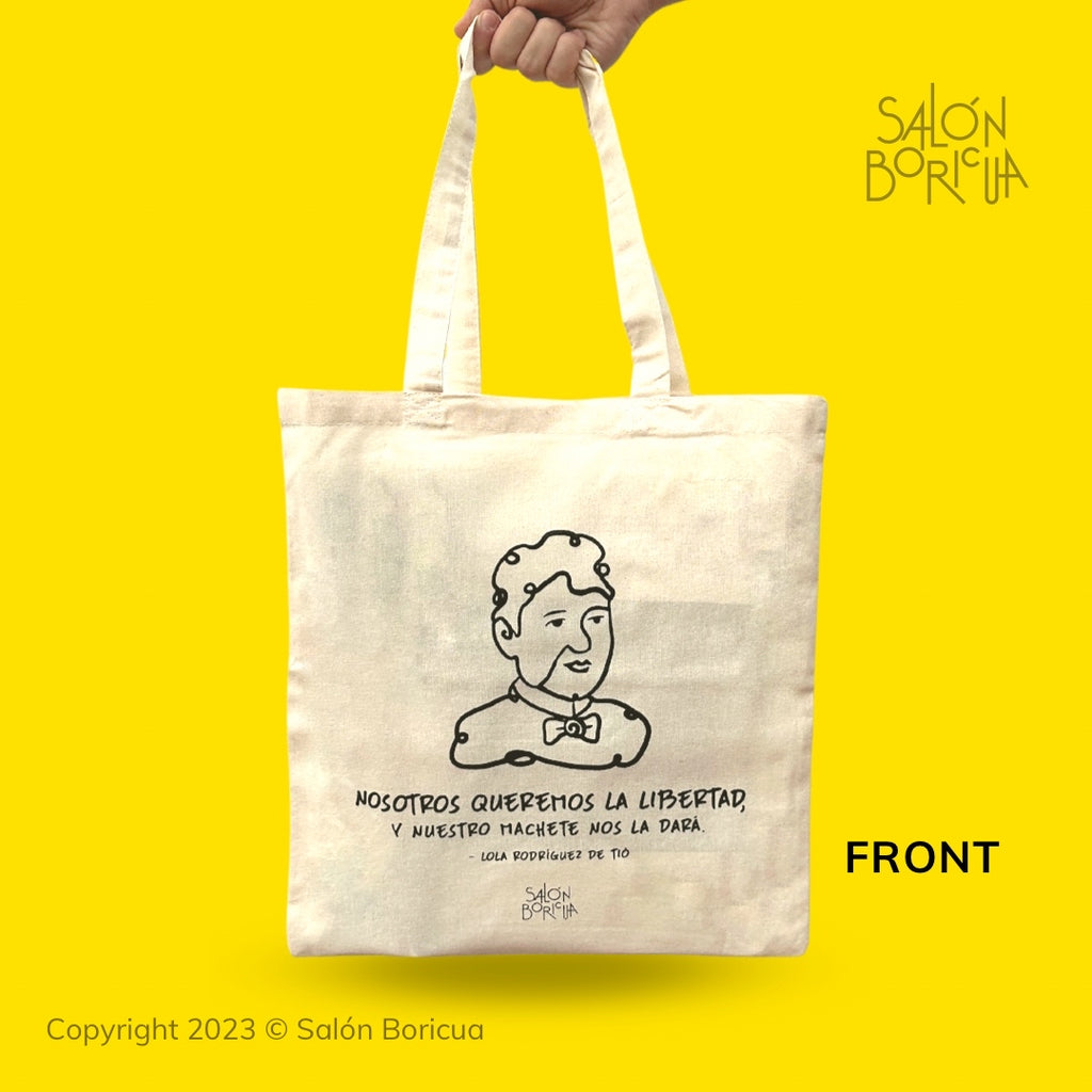 Nuestros bolsos Tote Bags presentan una imagen artística y frases inspiradoras de hombres y mujeres patriotas. Cada bolsa está serigrafiada a mano en Puerto Rico, lo que garantiza una atención al detalle y una calidad excepcional.