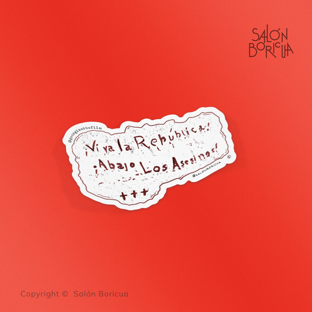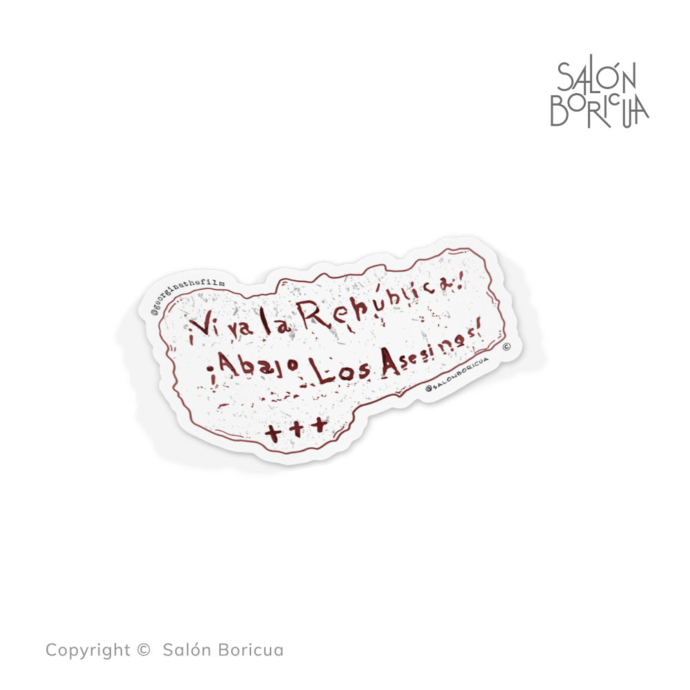 Impreso en vinil plástico premium con laminado de protección contra rayaduras, luz solar y lluvia. Troquelado. Diseñado por Wilmer Jobeth Fernández.